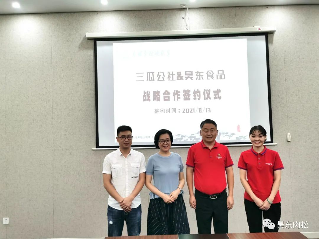 2021年8月13日昊東食品電商部正式與三瓜公社電商部牽手,達(dá)成戰(zhàn)略合作協(xié)議。未來我們將借助三瓜公社強(qiáng)大的影響力,開辟線上銷售新路徑,實現(xiàn)線上與線下的完美結(jié)合。