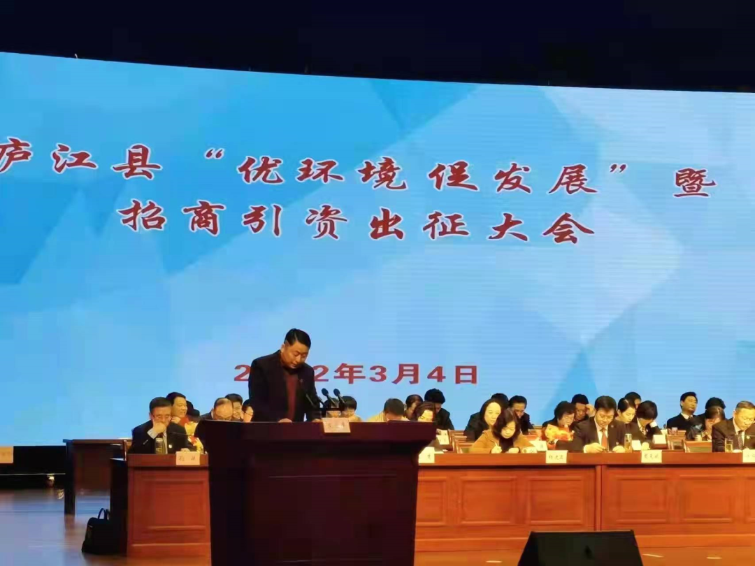 2022年3月4日,廬江縣“優(yōu)環(huán)境 促發(fā)展”暨招商投資出征大會(huì)在廬江大劇院1號(hào)廳舉辦,由縣委副書記、縣長(zhǎng)周天斌主持召開(kāi)。