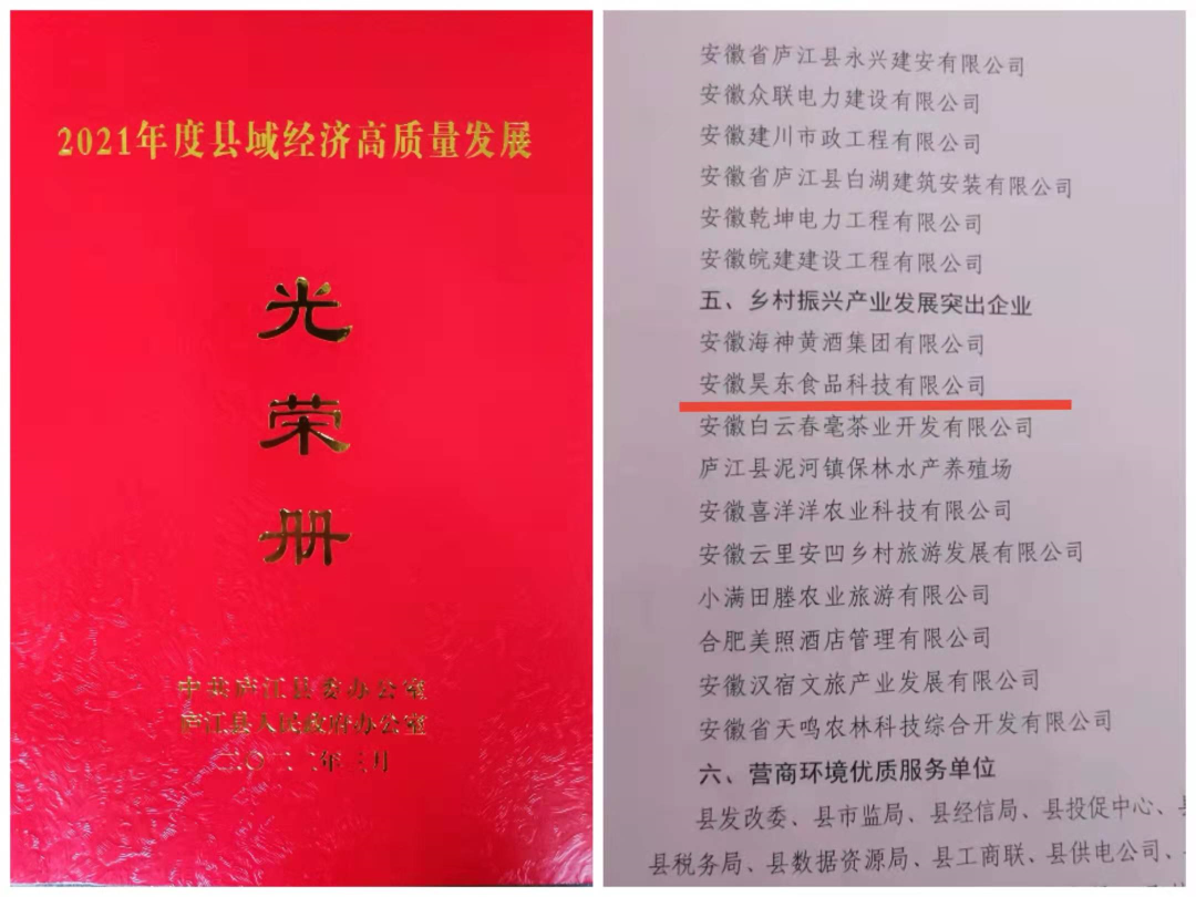 展望2022年,昊東食品將逐步擴(kuò)大生產(chǎn)規(guī)模,不斷加大研發(fā)費(fèi)用投入,盡最大努力,爭(zhēng)取為廬江的發(fā)展助力,以回饋這幾年來(lái)縣委縣政府各部門及臺(tái)創(chuàng)園管委會(huì)的關(guān)心幫助!安徽昊東食品科技有限公司始終秉持“堅(jiān)定信心、提振精神、真抓實(shí)干”的理念,獲得“2021年度鄉(xiāng)村振興產(chǎn)業(yè)發(fā)展突出企業(yè)”榮譽(yù)。